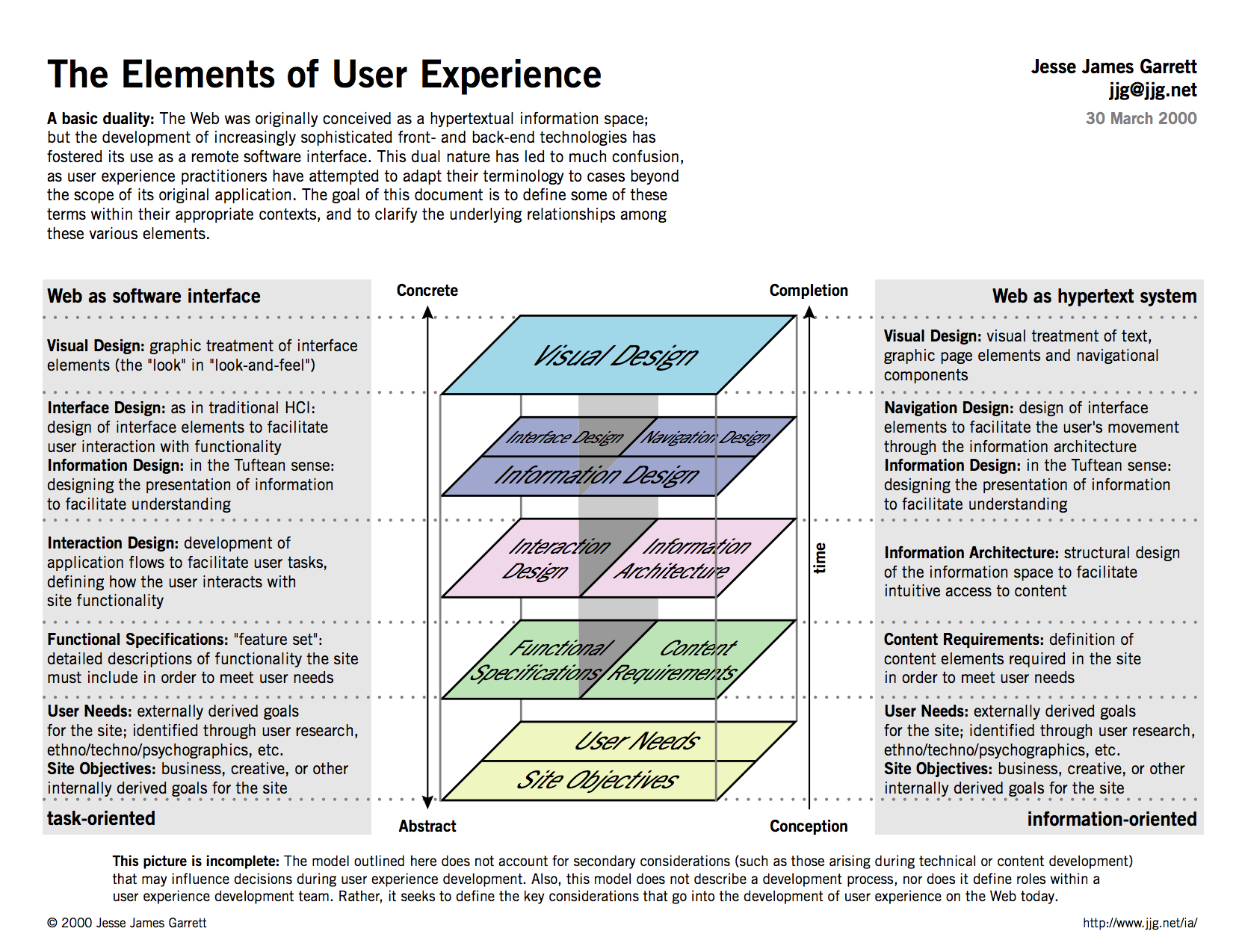 信息架构研究的是人们如何认知信息的过程,对于产品而言,信息架构关注的就是呈现给用户的信息是否合理并具有意义。显而易见,这对于所有以信息为驱动力的产品(比如公司的网站)来讲是非常重要的,而它对一些功能驱动的产品(比如手机软件)也会有很重要的影响。